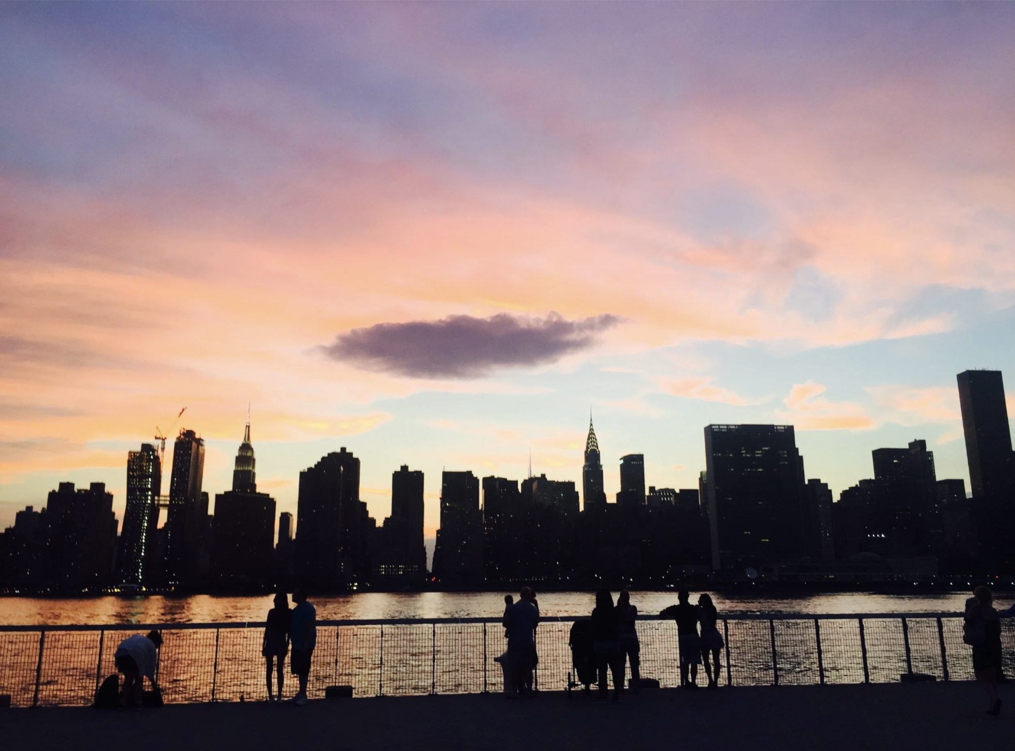 Photography of people enjoying the river and sunset in Hunter’s Point Park South.